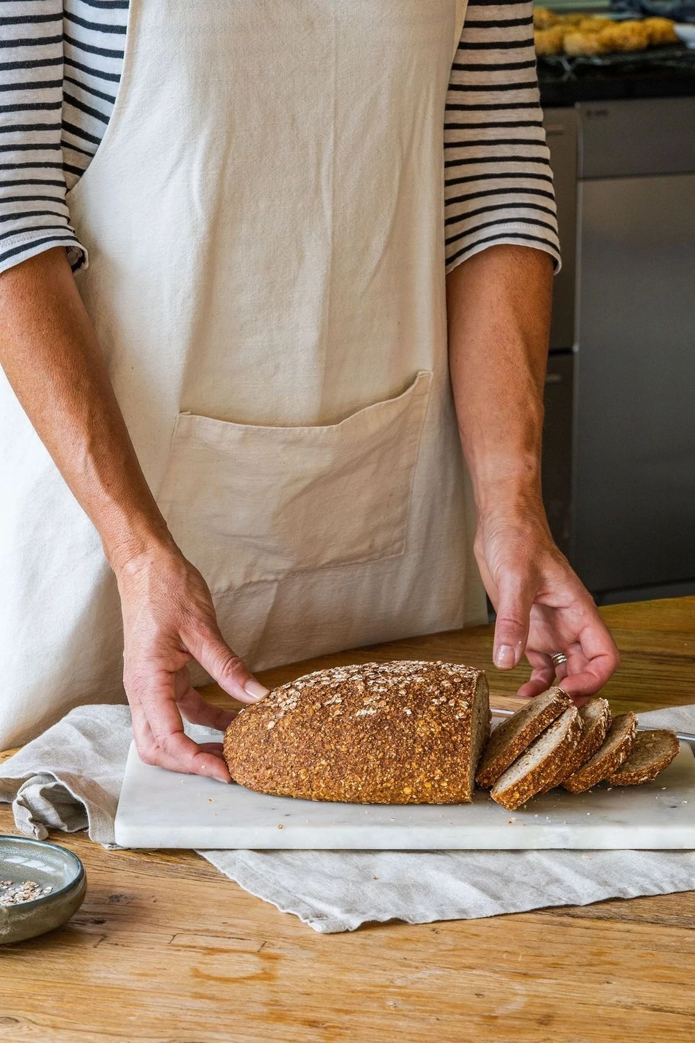 fullkorn bokhveteflak*, glutenfrie havregryn*, glutenfritt fullkorn havremel*, fullkorn quinoamel*, glutenfri havrekli*, sesam*, malte golden linfrø*, golden linfrø*, bokhvetesurdeispulver*(bokhvetemel), chia (Salvia hispanica) frø*, malte psylliumskall*, fortykner: guargum, salt.