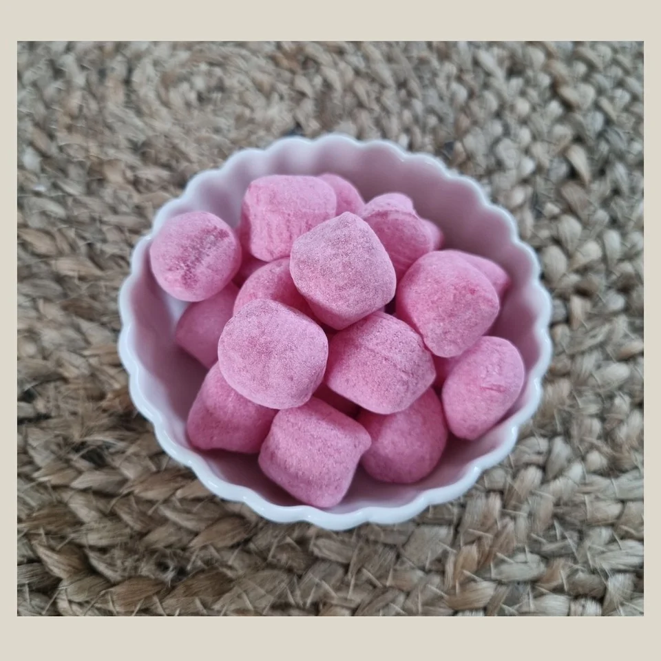Klassiske deilige jordbærdrops, leveres i praktisk ziplock pose. Glutenfri.