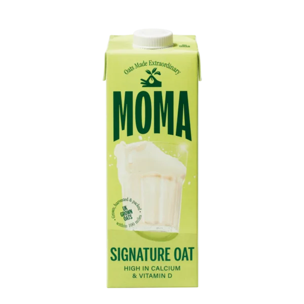 Moma`s signaturhavredrikk er laget med et høyt havreinnhold på 14 % og en oppskrift uten konsentrat for en overlegen havresmak og kremet munnfølelse.