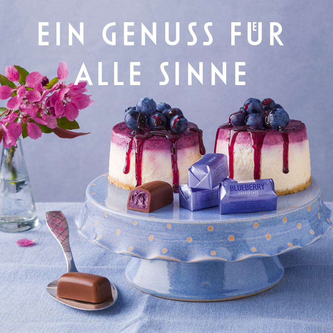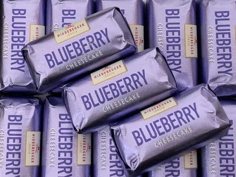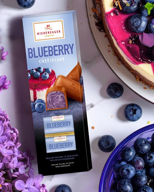 Niederegger Bluberry Cheesecake sjokolader er luksuriøse sjokoladekonfekter laget av det tyske premiummerket Niederegger,