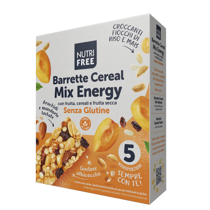 Ristede peanøtter 21,5%, invertsukkersirup, ris og maisflak 11,6% (ris 87,9%, sukker, maismel 2%, salt), puffet ris 11,1% (ris 93%, rørsukker, salt), rosiner 10,4% (rosiner 995,5 %), solsikkesirupsolje, solsikkesirupsolje. aprikoser 6,8 % (aprikoser 95 %, rismel), tørkede tranebær 6,8 % (tranebær 55 %, sukker, solsikkefrøolje), brente mandler 3,2 %, druesukker, rismel 0,73 %, vegetabilske oljer (palmeolje, sheaolje, lecithine: solsikkeolje, emulgator; naturlig smak.