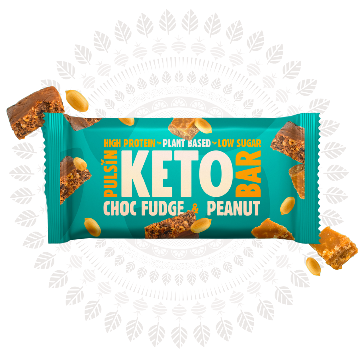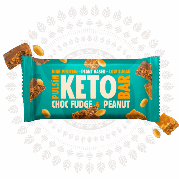 Pulsin Choc Fudge & Peanut Keto Bar inneholder 13 gram plantebasert protein og er fullpakket med sprø peanøtter og sjokolade uten tilsatt sukker. Det er den perfekte keto-proteinsnack for de som følger en keto- eller lavkarbo-diett.