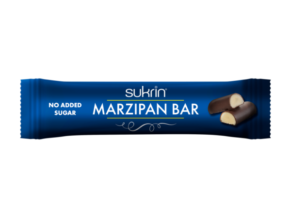SukrinMarzipan bar er et marsipanbrød laget av SukrinMarzipan, overtrukket med Sukrin Dark Chocolate.