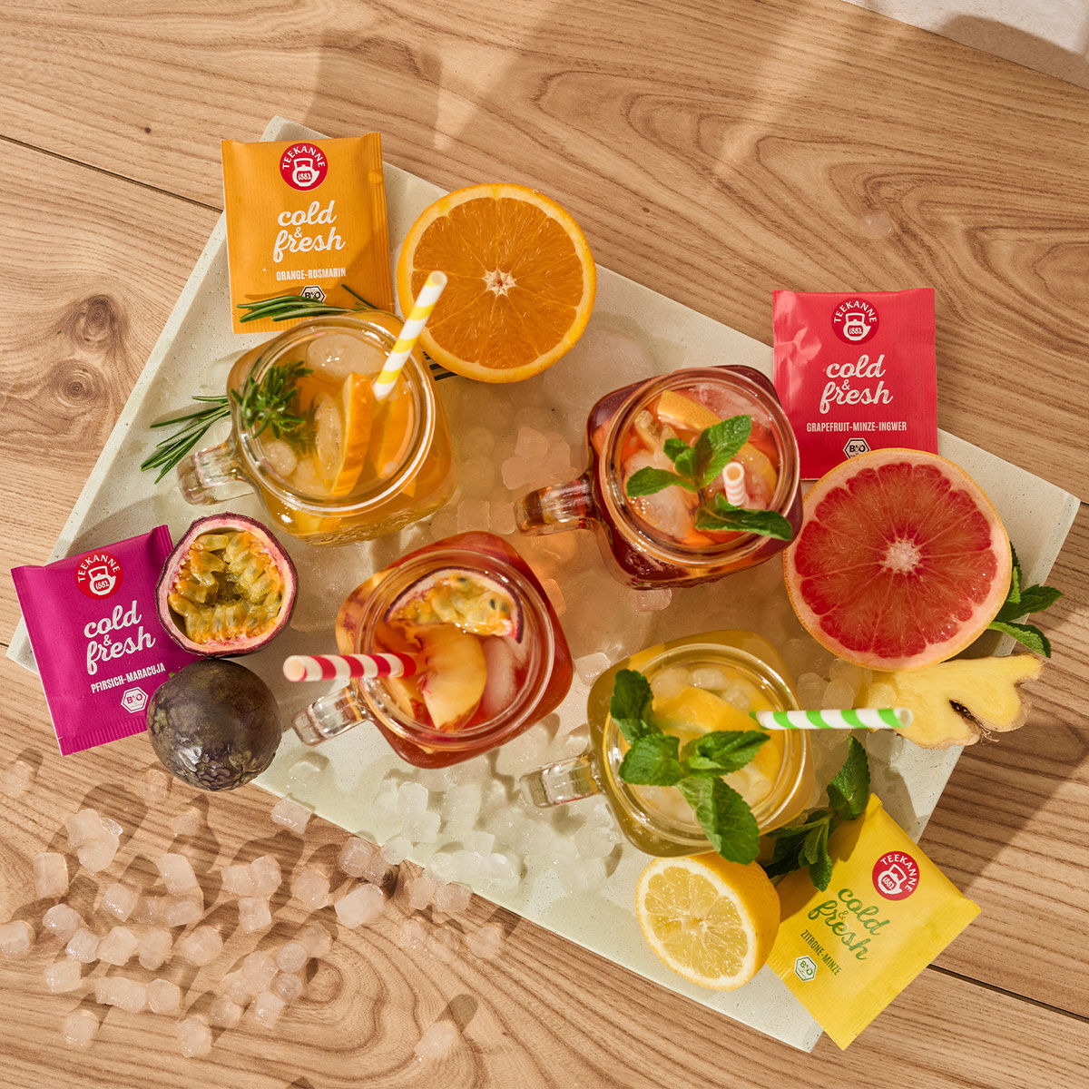Oppdag det forfriskende utvalget av Teekannes nye økologiske sommervarianter av te for kaldbrygging.