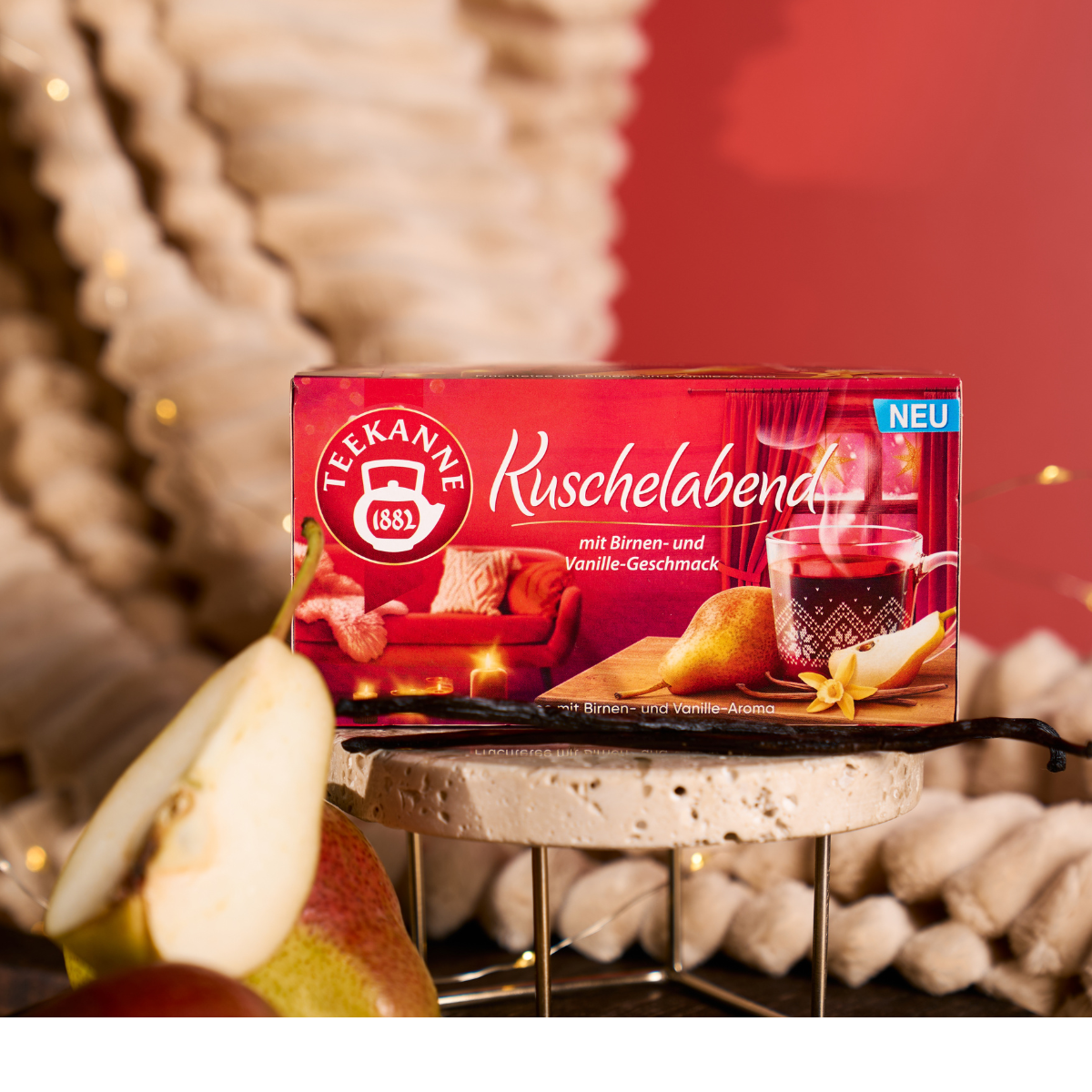 Spesielt i den kalde og mørke årstiden er en varm kopp te i den lune sofaen behagelig. Denne frukt-teen kombinerer den forlokkende smaken av søt pære og vanilje: hver kopp blir til en koselig og smakfull vinterutflukt hjemme.