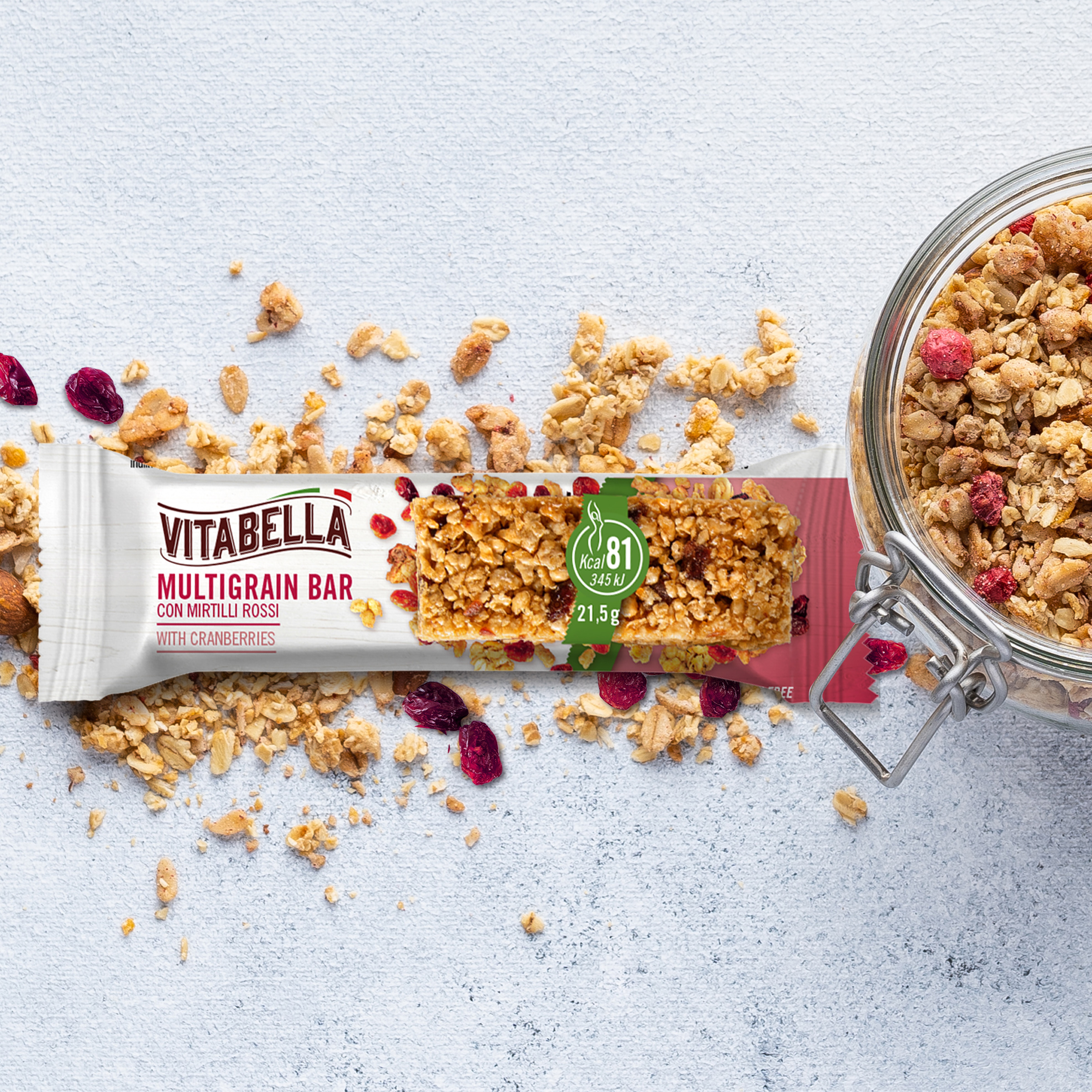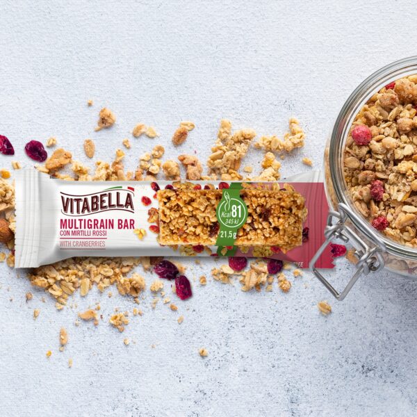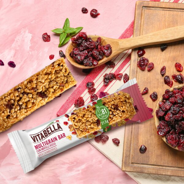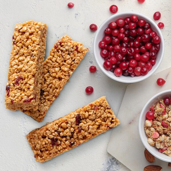 Glutenfri snackbar med biter av tranebær. Økologisk.