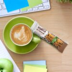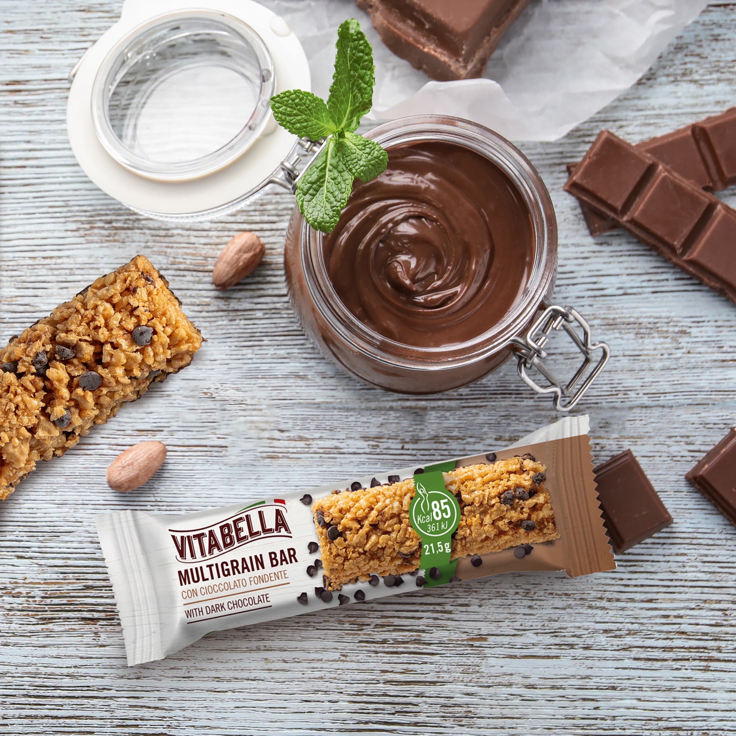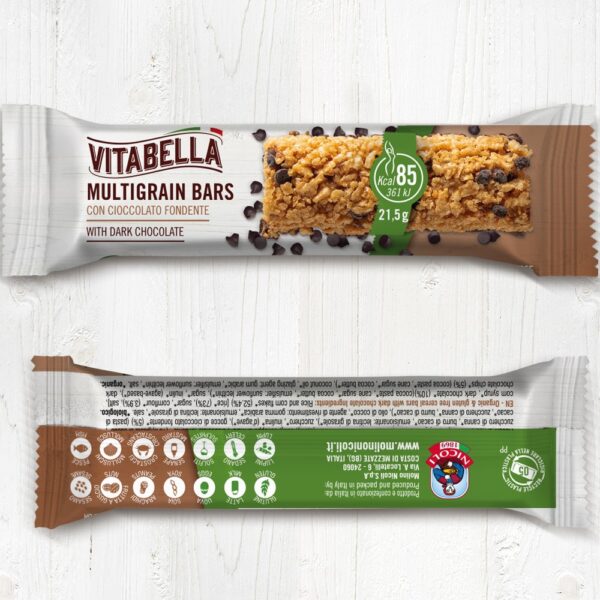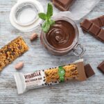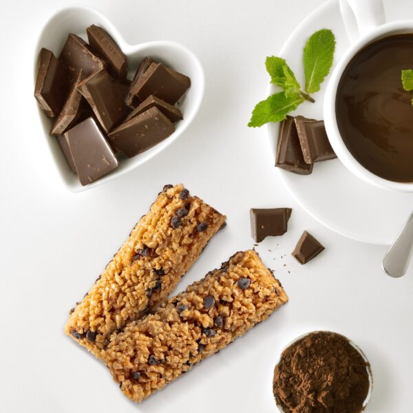 Glutenfri snackbar med store dråper av mørk sjokolade. Økologisk.